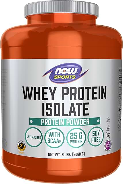 NOW Sports’ Whey Protein Isolate (5-pound) delivers 25g protein per scoop with BCAAs. Unflavored, non-GMO, and easily digested, it’s ideal for muscle growth and recovery. Mixes smoothly in water or juice, perfect for post-workout nutrition for athletes.