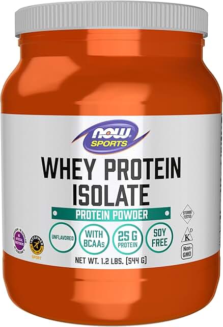 NOW Sports’ Whey Protein Isolate (1.2-pound) provides 25g protein and BCAAs per scoop. Non-GMO and unflavored, it’s perfect for muscle recovery and growth. Easily mixes with water or milk, ideal for athletes seeking clean, bioavailable protein.